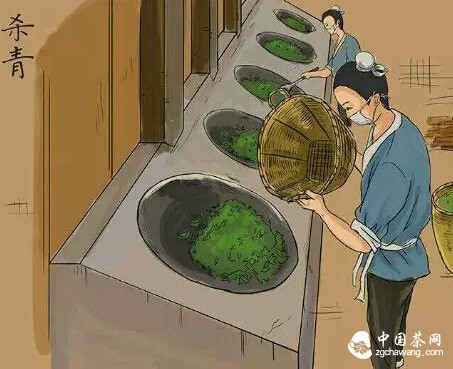 傳統(tǒng)鍋炒殺青,因鮮葉含水量高,殺青時必須快、抖結(jié)合,使茶葉失水