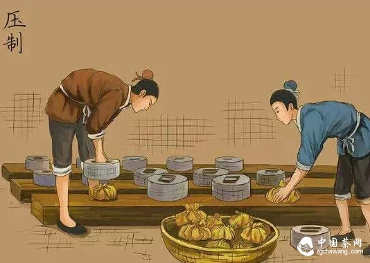 根據(jù)成品的要求把曬青的茶葉稱足重量用蒸汽蒸濕,放在不同模具里壓成形。