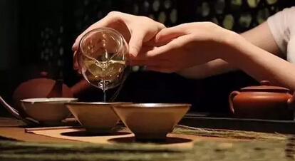提壺注水傾茶入杯或是持杯敬茶前,養(yǎng)成在茶巾上沾一下的習(xí)慣,使壺底、杯底的水滴,被茶巾吸干。