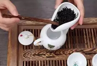 將壺溫?zé)岷?,把適量的茶葉放進(jìn)去,蓋上蓋子,利用壺內(nèi)的熱度將茶悶1分鐘,這時(shí)可欣賞茶葉的香氣。