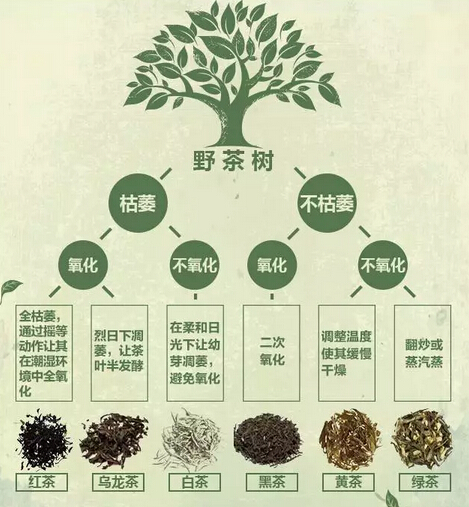 ▼所有的茶葉都來自于一種生物——茶樹不同的產(chǎn)地產(chǎn)生的不同品種茶樹,在不同的制作工藝之下,就成了我們看到的六種茶。
