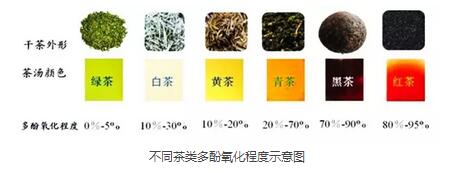 不同茶類多酚氧化程度示意圖