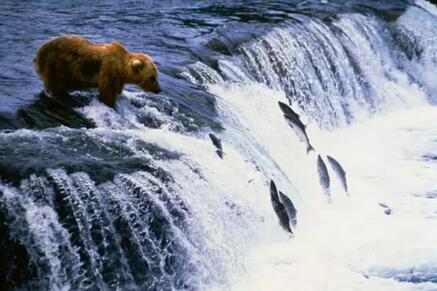每年產(chǎn)卵季節(jié),鮭魚都要千方百計(jì)地從海洋洄游到位于陸地上的出生地——那條陸地上的河流。央視動(dòng)物世界曾經(jīng)播放了鮭魚的回家之路,極其慘烈和悲壯。