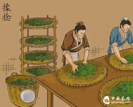 破碎茶葉細(xì)胞,保證茶汁在沖泡時(shí)充分浸出。揉捻要根據(jù)原料老嫩靈活掌握,嫩葉輕揉,時(shí)短;老葉重揉,時(shí)長(zhǎng)。掌握揉至基本成條為宜。