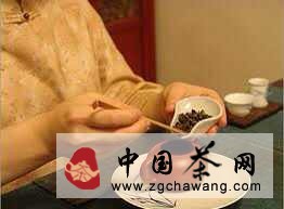 主人在泡茶款客前,應先拿出一些名優(yōu)茶放在茶盤中,供客人挑選,以表達主人對客人的尊重,同時讓客人仔細欣賞茶的外形、色澤和干香。