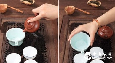 蓋上壺蓋,保存茶壺里茶葉沖泡出來的香氣,用沸水遍澆壺身也是這個(gè)目的。
