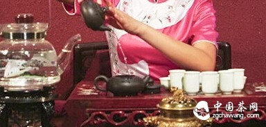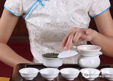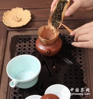 把茶葉放到器具里,也就是放茶過程到茶壺里,名字叫的好聽,程序簡單,表演可以適當(dāng)加入花式,更具有茶韻。