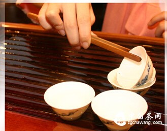 用蓋杯的是侯可以直接用茶則置茶,投茶量則視乎所沖泡之茶類與及個(gè)人之口味。使用茶壺時(shí)則可能需要用茶漏幫忙置茶,再用手輕拍茶壺,令茶葉擺放得平均。