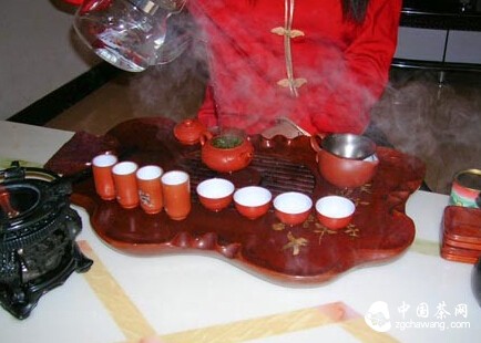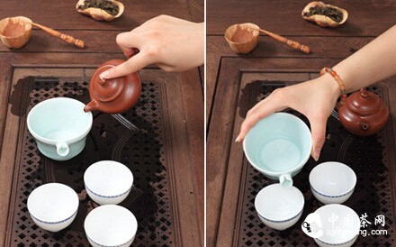 蓋上壺蓋,保存茶壺里茶葉沖泡出來(lái)的香氣,用沸水遍澆壺身也是這個(gè)目的。
