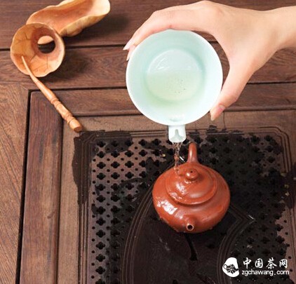將沸水倒入壺中,讓水和茶葉適當(dāng)接觸,然后又迅速倒出。目的是為了把茶葉表面的不清潔物質(zhì)去掉,還有就是把沒(méi)炒制好的茶葉過(guò)濾掉。