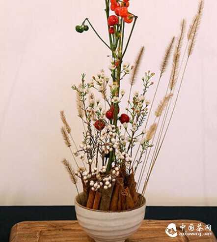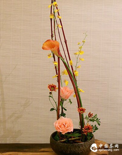 碗是人們天天接觸最親切的器具之一,傳統(tǒng)形狀與當今無多大區(qū)別,即口大底小,碗口寬而碗底窄,下有碗足,高度一般為口沿直徑的二分之一,多為圓形,極少方形。不斷變化的只是質(zhì)料,工藝水平和裝飾手段。根據(jù)花材的剛?cè)帷⑿?、色與碗器的不同,互相搭配,互相綜合而成為主花、副花、客枝,或主花、副花、客枝、使枝三結(jié)構(gòu)的碗花。