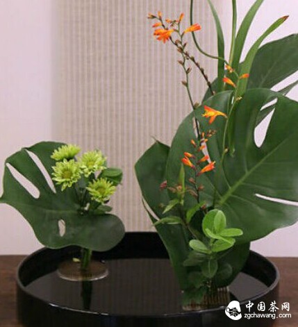 盤花的特點是盤器較淺,但器面廣,可取多點插作,也可欣賞水面。
