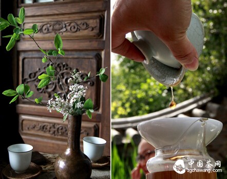 煮水泡茶的器具多則幾十種,個(gè)性的茶席只需要挑選符合自己需要和審美的要求的茶具就足夠了。茶席上必備的基礎(chǔ)器具有煮水器、泡茶器、勻茶器、茶盞等,其他如茶則、水盂、茶巾、茶罐等物件,可隨需安置,另有花器、茶寵等物件,則隨喜好及茶席主題而設(shè),全憑個(gè)人巧思。