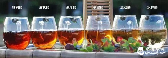 由于茶湯中的茶多酚與空氣接觸會很快氧化,以致茶湯容易變色,因而要及時欣賞湯色,主要從色度、亮度、清濁度等方面,辨別茶湯顏色深淺、正常與否、茶湯暗明、清澈或渾濁程度。