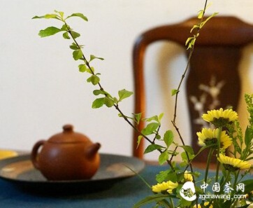 插花在茶席上的應(yīng)用,它可以協(xié)助主人達(dá)到茶席所要表達(dá)的意境。但現(xiàn)在所要說的是以插花為主要手段,表現(xiàn)了主人所要達(dá)到的任務(wù),這時的插花不能只是站立在一旁觀看,而是要進(jìn)入到泡茶席的核心區(qū),與茶具一起共舞。