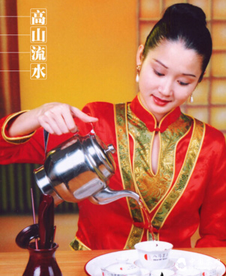 俗稱“關(guān)公巡城”,就是把茶水依次巡回均勻地斟入各茶杯里,斟茶時應(yīng)低行。