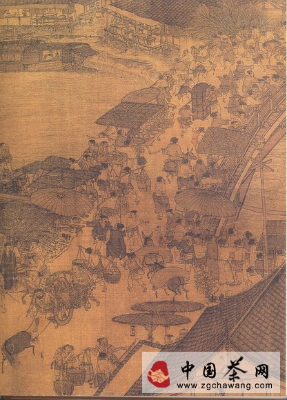 茶館,作為當(dāng)時(shí)世俗生活的典型場(chǎng)景,作為一種經(jīng)濟(jì)與文化高度繁榮的產(chǎn)物,在畫(huà)中有了反映。宋人飲茶風(fēng)氣之盛,以此可見(jiàn)。宋人在《夢(mèng)梁錄》中對(duì)此有詳盡的描寫(xiě)。