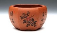 紫砂陶還有一個特點,就是把詩情畫意由雕刻藝人直接刻畫在紫砂陶土上。最早見于明代、清初,一些文人雅士吟詩作畫、題詩記事于壺上,并有留言作為饋贈珍品,那時以陳曼生、子冶為最,他們推動了在紫砂陶上陶刻藝術的發(fā)展,著有“字隨壺傳、壺隨字貴”之說法。近幾年,裝飾方面又有創(chuàng)新,在紫砂陶上嵌金銀絲等裝飾新工藝更為光彩奪目、錦上添花。