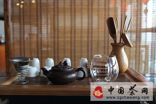 茶海:奉茶人在沖泡茶葉時(shí)會(huì)將濃淡適度的茶湯斟入茶海中。茶先斟入茶海中再分別倒在客人的杯中,可以使每一位客人杯中的茶湯濃淡相同,故茶海又名公道杯。