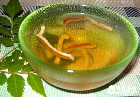 取干橘皮10克,洗凈,撕成小塊,放入茶杯中,沖入開(kāi)水,蓋上杯蓋大約悶10分鐘即可,不僅能消暑還能止咳、化痰、健胃。