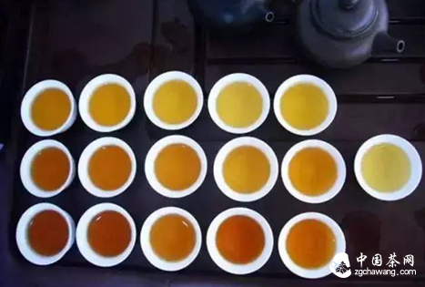 橙黃:湯色黃中微帶紅,似橙色或桔黃色。