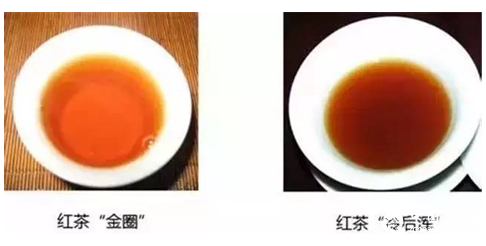 冷后渾、乳凝:紅茶湯濃,冷卻后出現(xiàn)淺褐色或橙色乳狀的渾湯現(xiàn)象,稱為冷后渾或乳凝,品質(zhì)好的紅茶出現(xiàn)這種現(xiàn)象。