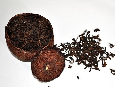 其實(shí),柑普茶最特殊的魅力,來自其制作原料之一的柑皮。柑皮,為蕓香科植物茶枝柑或甌柑等多種柑類的果皮,藥用形態(tài)多為陰干或曬干的柑皮,俗稱陳皮,陳化多年的柑皮又稱老陳皮,多為世人所追?!侗静菥V目》說柑氣味甘,大寒(此處指鮮柑,曬干的陳皮性溫),無毒;主治:利腸胃中熱毒,利小便,治難產(chǎn);并說柑“今天下以廣中采者為勝”(廣中即今新會(huì))?,F(xiàn)代醫(yī)學(xué)研究表明,柑的主要功能為生津止渴、潤燥、和胃、利尿和醒酒,加上優(yōu)質(zhì)熟茶的良好作用,柑普茶順氣理中、健脾燥濕、化痰治咳、疏肝潤肺和消積化滯的功效明顯,二者的結(jié)合可謂雙劍合璧。