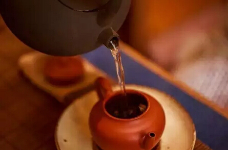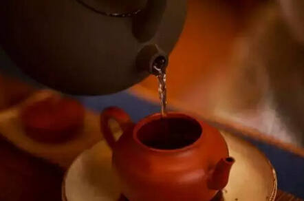 注入100攝氏度開水,洗茶。洗茶的時候不需要悶泡,可以立即出湯,茶湯不喝,但也可以用來洗壺。