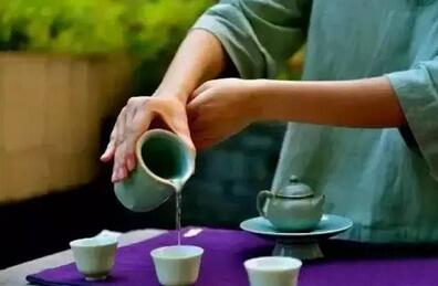 還有出湯速度,茶湯倒入公道杯時(shí),手拿蓋碗的角度決定了出湯速度快與慢。