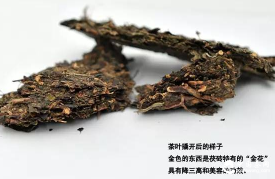 適量的茶梗使磚體松緊適度,有利于“金花”的形成,同時(shí)茶梗含有豐富的香氣物質(zhì),可以一起沖泡、享用。