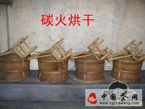 烘焙:復(fù)揉后的茶葉經(jīng)解塊后,于焙籠中攤放在特制的有孔平面焙篩上,明火高溫水焙,各焙窟溫度從高逐漸到低,在不同溫度的條件下完成水焙工序。下焙后過篩,置于篩中薄攤后放在晾青架上晾索,在透晾并待茶條轉(zhuǎn)達(dá)色后,付初揀。剔除梗、片,再經(jīng)巡茶者揀出不夠好的茶條。揀完加焙燉火,在燉火后團(tuán)包。團(tuán)包后,還要最后復(fù)火,俗稱坑火,以去紙中水分。這樣對提高耐泡程度、醇和度、熟化香氣及增進(jìn)湯色能起明顯的作用。燉火結(jié)束后,趁熱堆裝箱,對巖茶內(nèi)含物質(zhì)能起熱處理的催化作用,以達(dá)到香氣、滋味的提高。燉火過程的細(xì)致處理,為巖茶所獨(dú)有,而為任何其它茶類所不及。