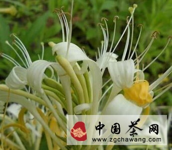 金銀花茶是用金銀花及茶葉加工而制成的;金銀花又稱忍冬花,是半常綠灌木,莖半蔓生,葉卵圓形,花朵呈喇叭形。金銀花茶是一種新興保健茶,其外形條索緊細(xì),色澤灰綠光潤(rùn),沖泡后湯色黃綠明亮,香氣清純持久,滋味醇厚甘爽,葉底嫩勻柔軟。金銀花茶的制作工藝是:原料制備~金銀花采收~茶葉吸香~花茶配制。