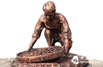 把殺青后的茶葉包在特制的布里,利用“手腳”把整個(gè)茶葉緊包成球狀。如圖:從這個(gè)環(huán)節(jié)開(kāi)始其目的就是制作外形和顏色。