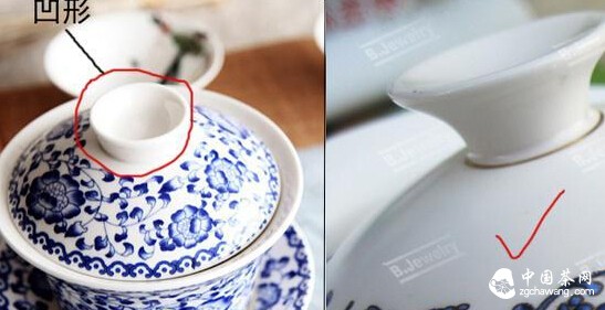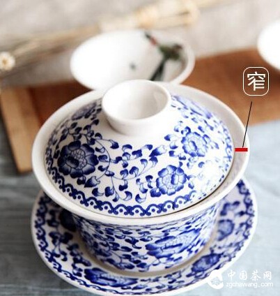 碗身口與蓋子邊的距離窄,這樣茶水容易溢出燙到手。寬口的就不會(huì),茶杯也一樣。