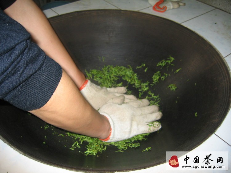手不離茶,茶不離鍋,揉中帶炒,炒中有揉,炒揉結(jié)合,連續(xù)操作,起鍋即成。主要工序?yàn)椋簹⑶?、揉捻、搓團(tuán)顯毫、烘干。