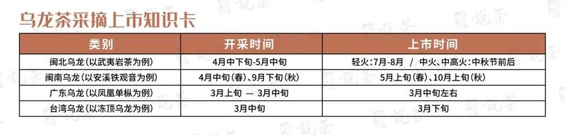 烏龍茶在3月上旬開(kāi)始陸續開(kāi)采。做春、秋兩季的安溪鐵觀(guān)音在每年的4月、9月進(jìn)行采摘。