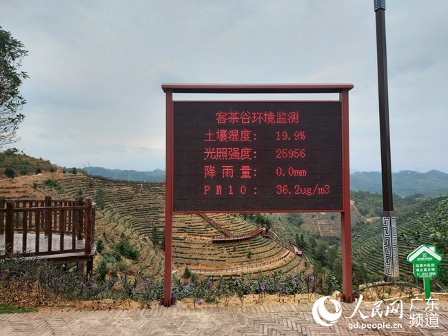 山路蜿蜒,青山環(huán)繞。走進(jìn)位于紫金縣紫城鎮藍坑村的“紫金客茶谷”,一塊環(huán)境監測電子屏幕吸引人們的目光:土壤濕度19.9%、PM10濃度36.2ug/m3……