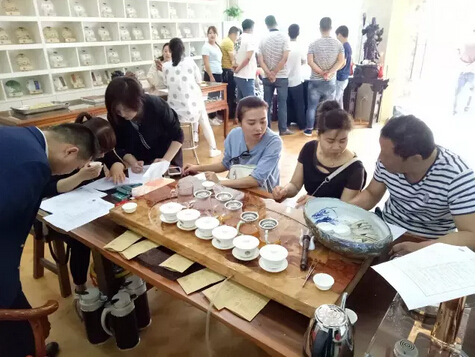 在簡(jiǎn)短而熱烈的歌唱琴藝表演及店長(zhǎng)致辭之后,品鑒會(huì)正式開始。此次易武斗茶會(huì)明星茶全國(guó)品鑒會(huì),祥源茶為大家傾情奉上了來(lái)自普洱名山頭的2016年新茶,包括倚邦、革登、莽枝、蠻磚、攸樂五大茶山以及來(lái)自易武七村八寨的珍稀茶品,20款名山名(村)寨茶一經(jīng)亮相,便引得現(xiàn)場(chǎng)驚嘆連連!