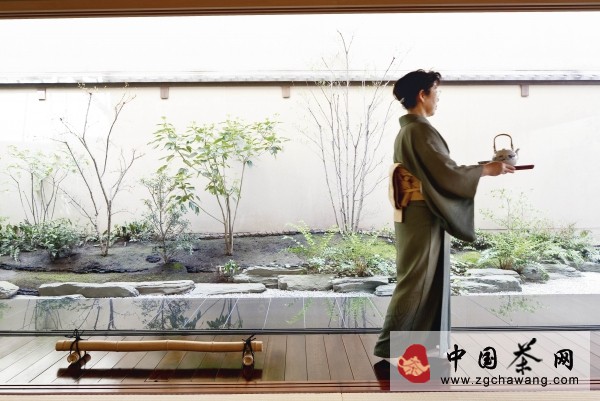 和客人鞠躬行禮,寒喧幾句之后,主人開(kāi)始煮茶,這時(shí)客人要退出茶室,到后面花園或石子路走走,讓主人自由、從容地準備茶具、煮茶、泡茶。主人泡好茶以后,敲鐘讓客人再回茶室,然后開(kāi)始一起飲茶,飲完茶以后,主人還要跪坐在門(mén)外,向客人一一祝福道別。(真心累!)