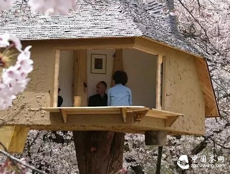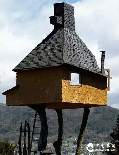 當然,客人要到達茶室必須通過(guò)靠在樹(shù)干上的梯子,樹(shù)干則是在附近山上砍伐的。爬梯子一半以后要脫去鞋。茶室內部很簡(jiǎn)單,只有石膏墻和席子,爬梯時(shí)的冒險感覺(jué)在這時(shí)瞬間換成了一種平靜,更適合于體會(huì )茶藝。