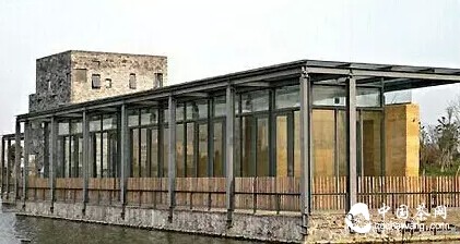 茶室采用合院形態(tài),其屋面由鋼構玻璃建造,南面有一小荷塘,經(jīng)一小橋直入。這水上的茶室讓傳統和現代完美的結合在一起,坐在里面品茶一定別有滋味了~