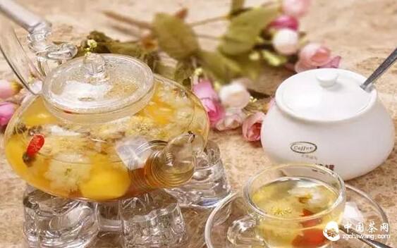 用開(kāi)水沖泡茉莉花茶時(shí),放入五六朵白菊花,也可以再加幾顆同樣有滋補肝腎功效的枸杞,使花茶明目的作用加強。