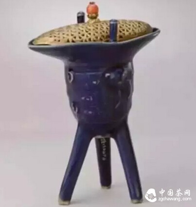 12、爵杯:仿青銅器造型,口沿外撇,圓腹略深,前尖后翹,下承三高足,口沿兩側有對稱(chēng)的立柱。明、清兩代均有燒造,有青花、白釉、藍釉及粉彩等品種。
