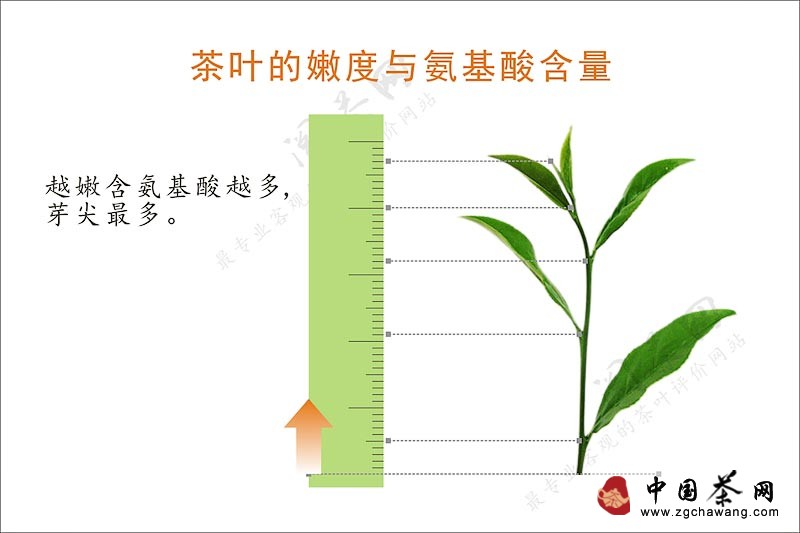 實(shí)質(zhì)上氨基酸是組成茶葉滋味最重要的三大類(lèi)物質(zhì)之一(茶多酚、氨基酸、咖啡堿),茶湯口感好不好,很大程度上就取決于這三類(lèi)物質(zhì)的含量與比例關(guān)系。部分氨基酸還表現出一定的良好香氣,如腥甜、海苔味、鮮甜、紫菜氣味等等,這些感覺(jué)在日式蒸青茶或者一些名優(yōu)細嫩綠茶當中常被發(fā)現,這是由于這些茶當中,普遍氨基酸含量都較高。此外,有些氨基酸還能與其它物質(zhì)相結合,在制茶過(guò)程中參與良好香氣的形成。
