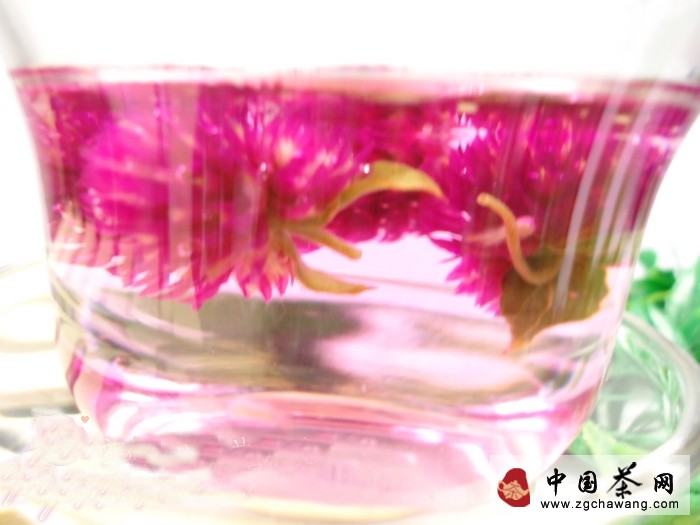 千日紅花序雖細(xì)小,但花色艷麗有光澤,且經(jīng)久耐用能長(zhǎng)期保持原有的花形和顏色,因此而得名。顏色鮮艷的千日紅花在熱茶水中要經(jīng)過(guò)長(zhǎng)時(shí)間的浸泡,色澤才會(huì)逐漸變淺,花苞的艷麗色彩會(huì)滲入茶中,使千日紅花茶成為賞心悅目的嫩粉色。千日紅花具有清肝,散結(jié),止咳定喘的功效。