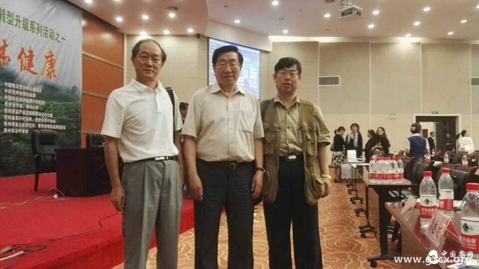 (圖中者為陳宗懋院士,左一為省茶葉協(xié)會(huì )辦公室主任程天荃,右一為省茶葉協(xié)會(huì )副秘書(shū)長(cháng)戴維)