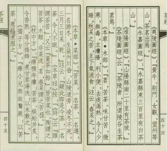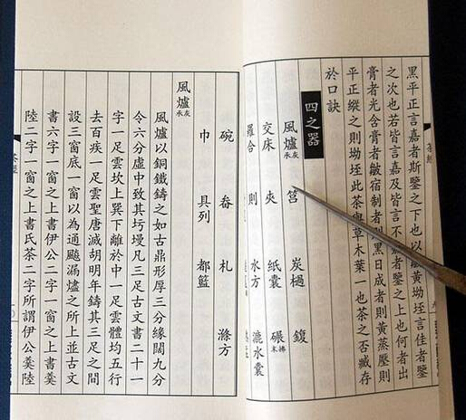 《茶經(jīng)》成為世界上第一部茶學(xué)專(zhuān)著(zhù),是陸羽對人類(lèi)的一大貢獻。全書(shū)分上、中、下三卷共十個(gè)部分。其主要內容和結構有:一之源;二之具;三之造;四之器;五之煮;六之飲;七之事;八之出;九之就;十之圖。